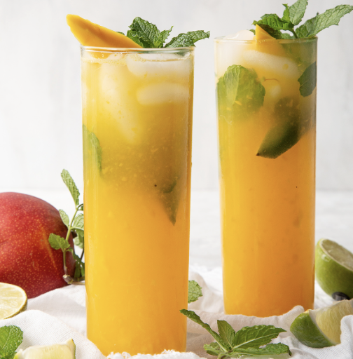 A tropical mango twist blended with fresh mint, tangy lime and sparkling soda for a sweet, zesty, and refreshingly fruity sip – “Unleash the tropical burst in every sip.”