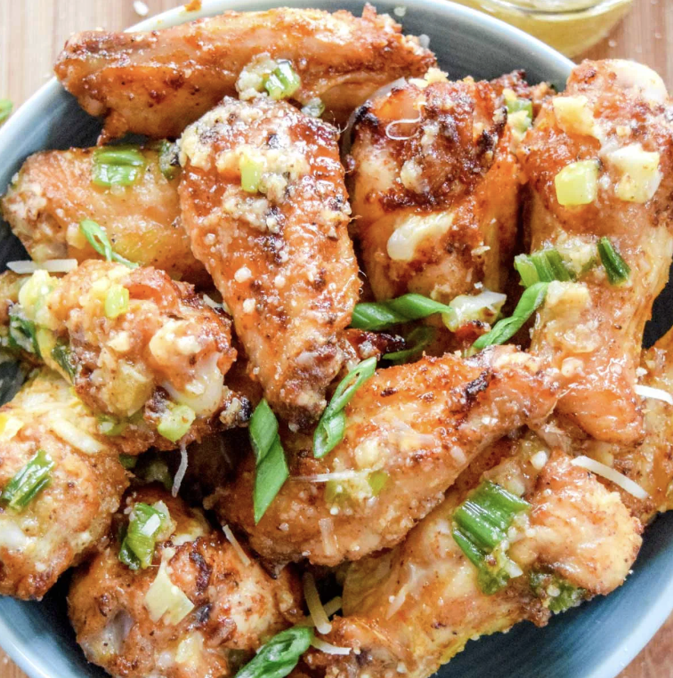 Lucious Chicken Wings with Rich Melted Butter Infused with Garlic, Parsley, and a Sprinkle of Savory Parmesan.