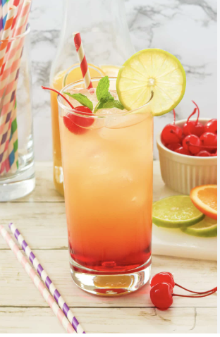 A bubbly, refreshing mix of ginger ale and Cherry Syrup, lemonade & sparking soda water topped with a splash of sweetness and a bright cherry garnish—"fun, fizzy, and irresistible.”